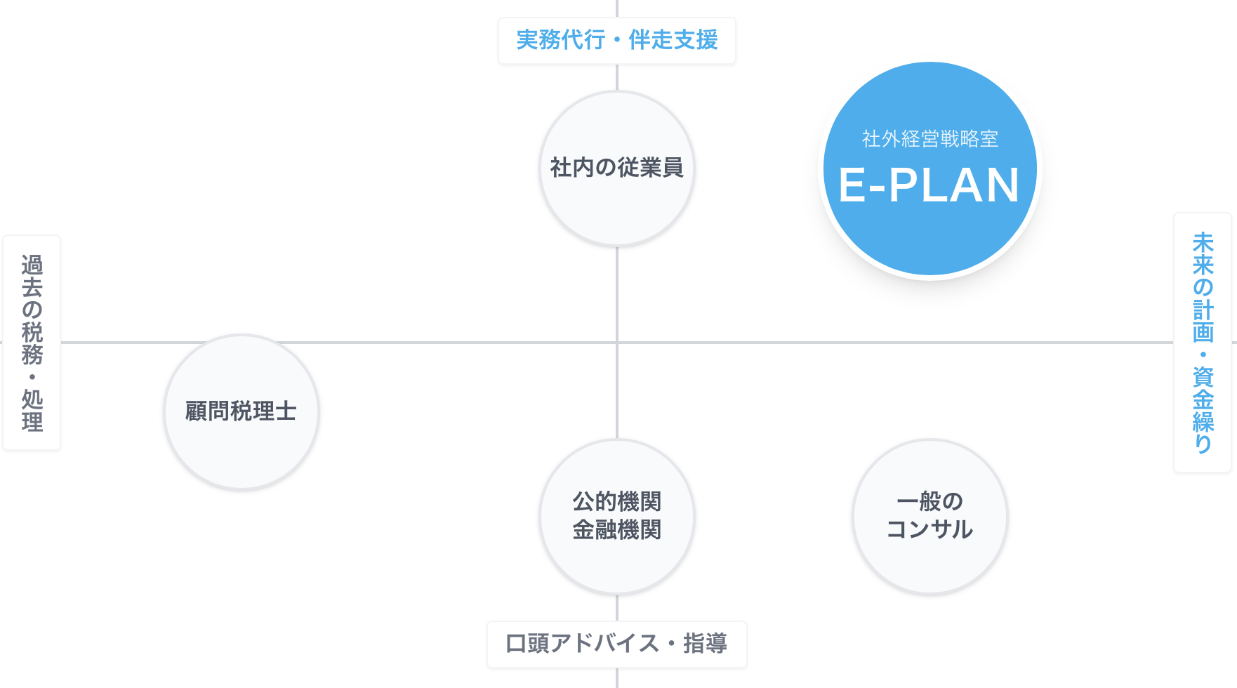 | 競合・相談相手 | 社長にとっての不足点 | E-PLANの立ち位置 |